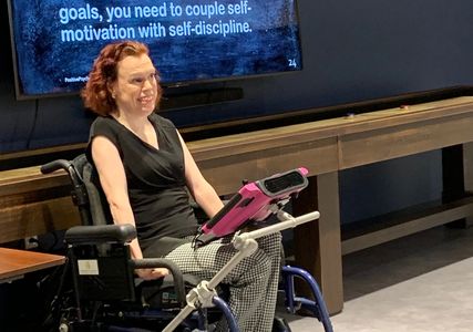 Various times, she has traveled to Washington DC to speak with college students about life as a disabled American Citizen. She has lectured at Georgetown University, the University of Notre Dame, Carnegie Mellon University, Vanderbilt University the School of Medicine and Vanderbilt University (the undergraduates).